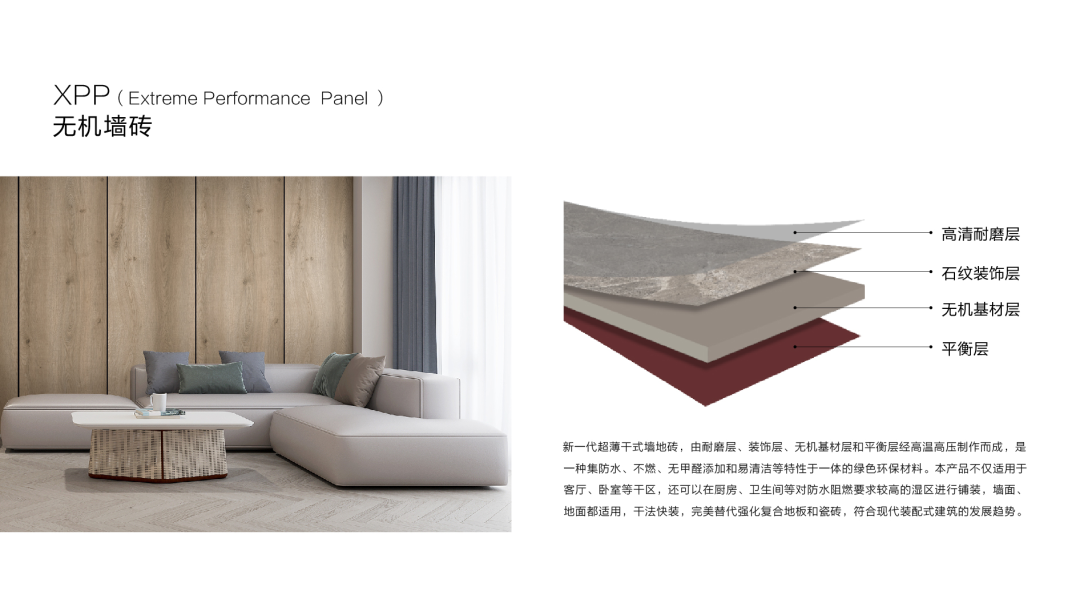 材料创新——无机墙地砖,草莓视频黄色片铺装、周期短成本低、A级防火性能,符合现代装配式建筑需求;