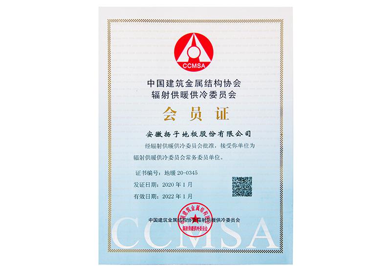 - 中国建筑金属结构协会辐射供暖供冷委员会会员 2021-01-04